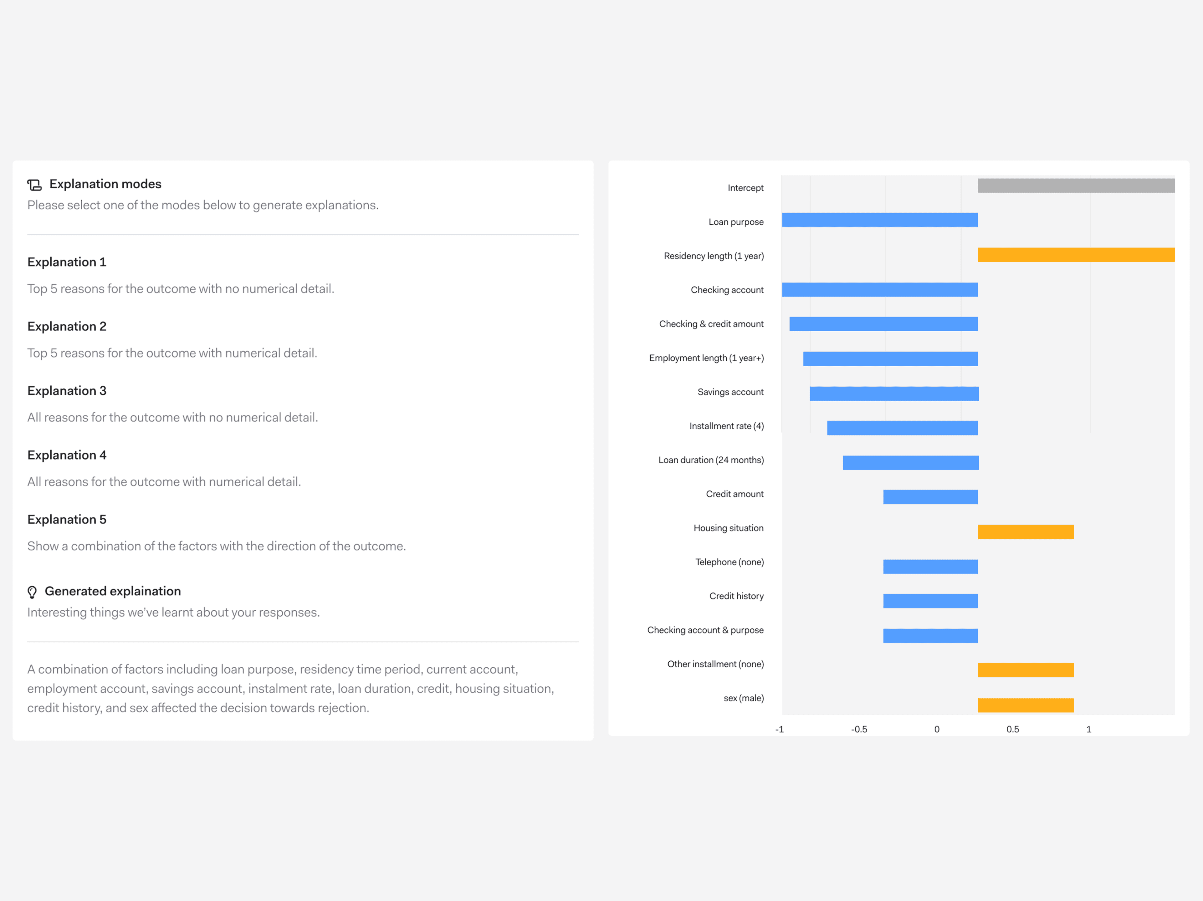 The xAI loan assistant gave underwriters and users justifications for it’s decisions, and recommendations on how to uplift their loan.
